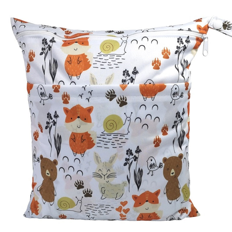 The Two Zippered Waterproof Wet Dry Bag is for you. With the Two Zippered Waterproof Wet Dry Bag, you can finally store your baby’s dirty or wet clothes in a waterproof, reusable bag on the go. With two zippered compartments, there is plenty of room to store your baby’s wet and dry clothes separately in the same bag. Each bag contains a "wet" section that is sewn and sealed for no wicking or leaking AND a zippered dry section along with a clever snap handle for easy carrying. As a large versatile bag, you can also use it for diapers, swimwear, pump parts, toys, makeup, and more.