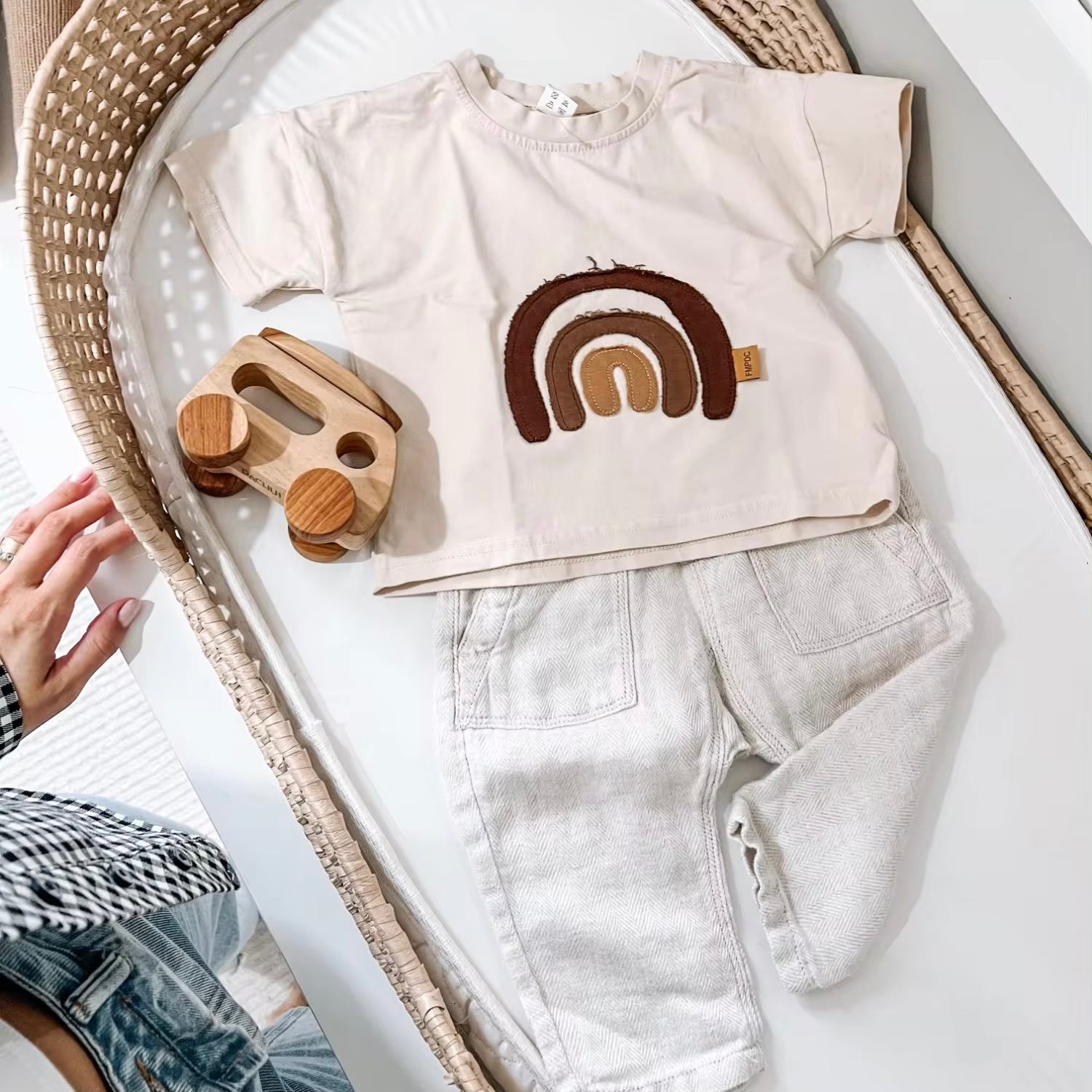 1pc: Baby Toddler Unisex Graphic Rainbow T-Shirt Shorts