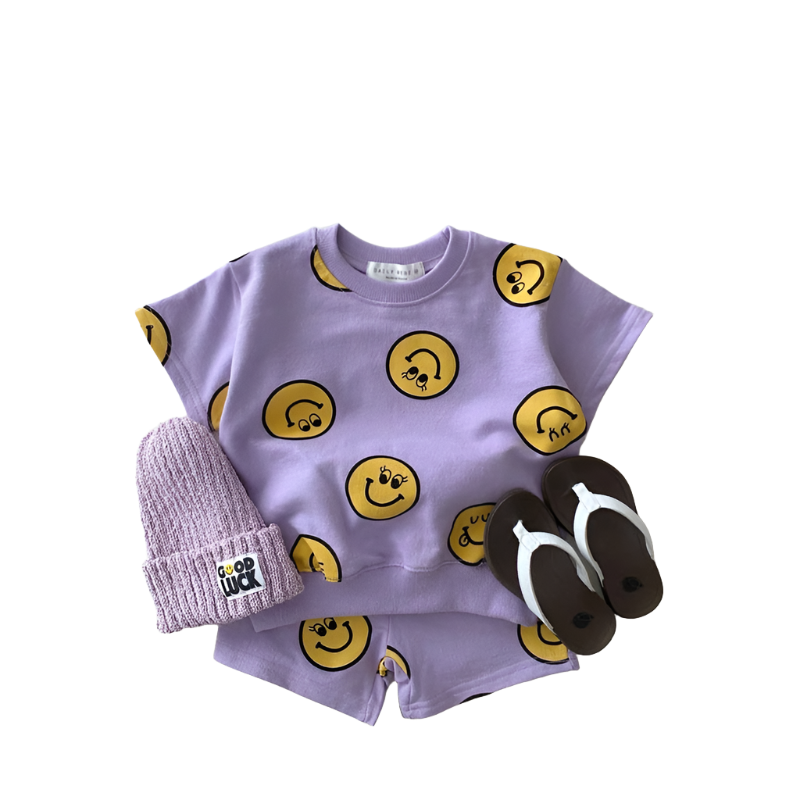 2 Pc Set: Baby Toddler Purple Summer T-Shirt and Shorts Smile Set