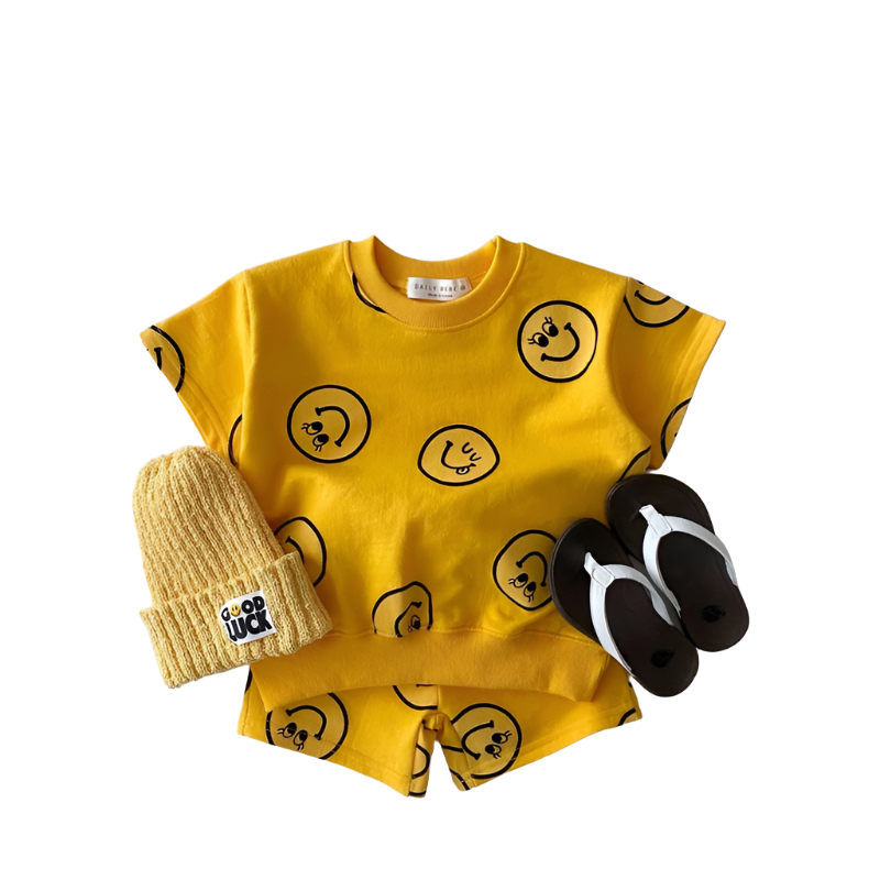 2 Pc Set: Baby Toddler Yellow Summer T-Shirt and Shorts Smile Set