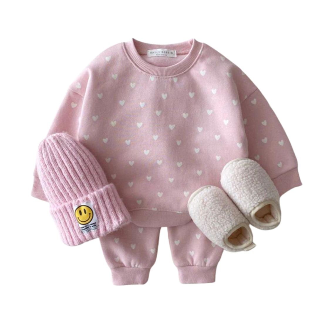 2 Pc Set Infant Toddlers Unisex Pink Hearts Sweater Top and Bottom Set