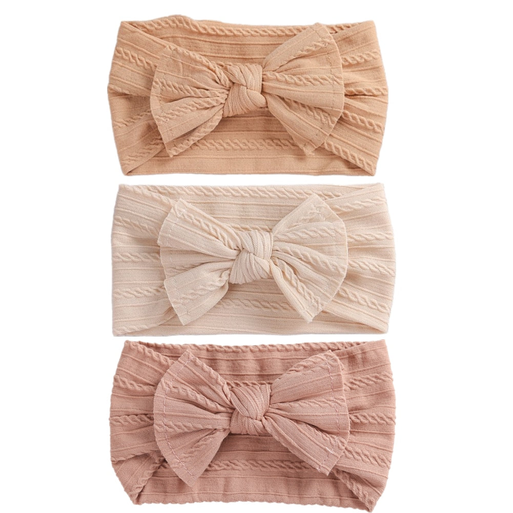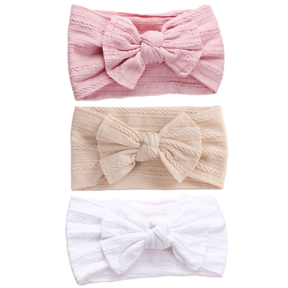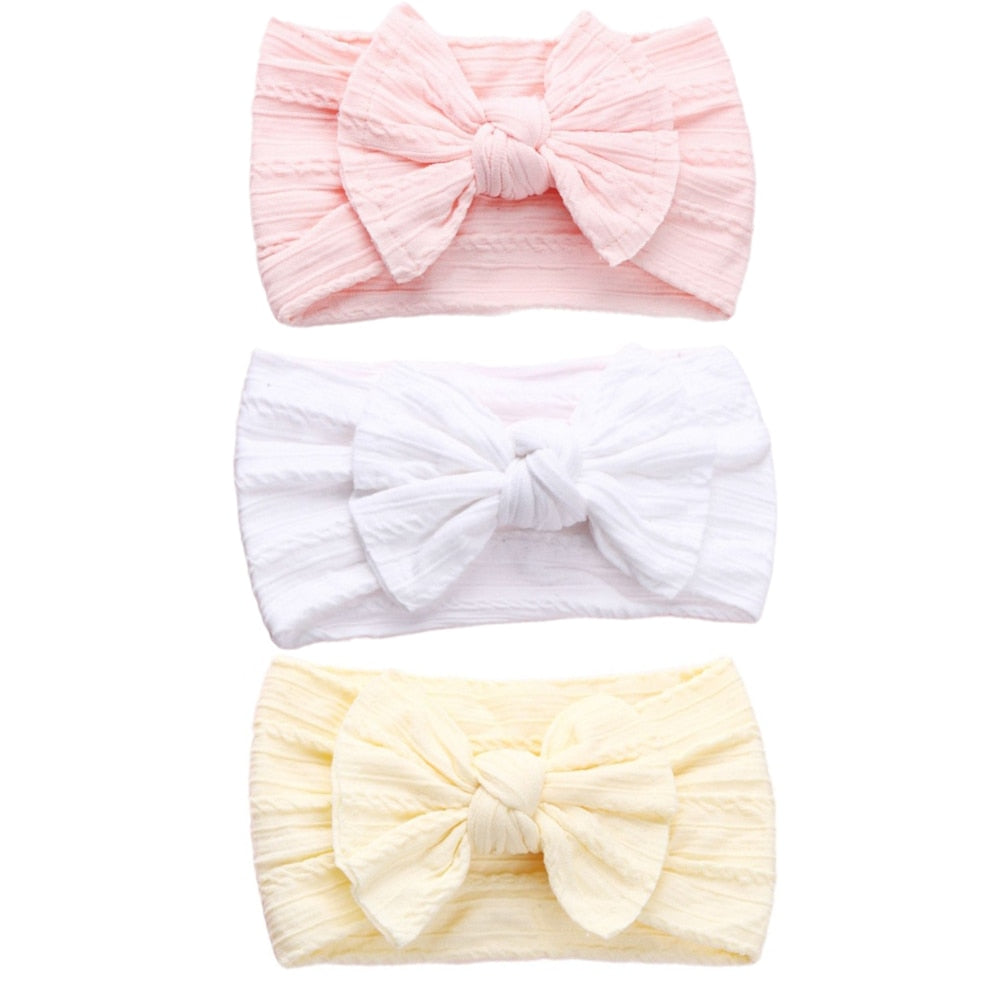3 Pc: Solid Color Baby Girls Headband with Bow Hair Accessories