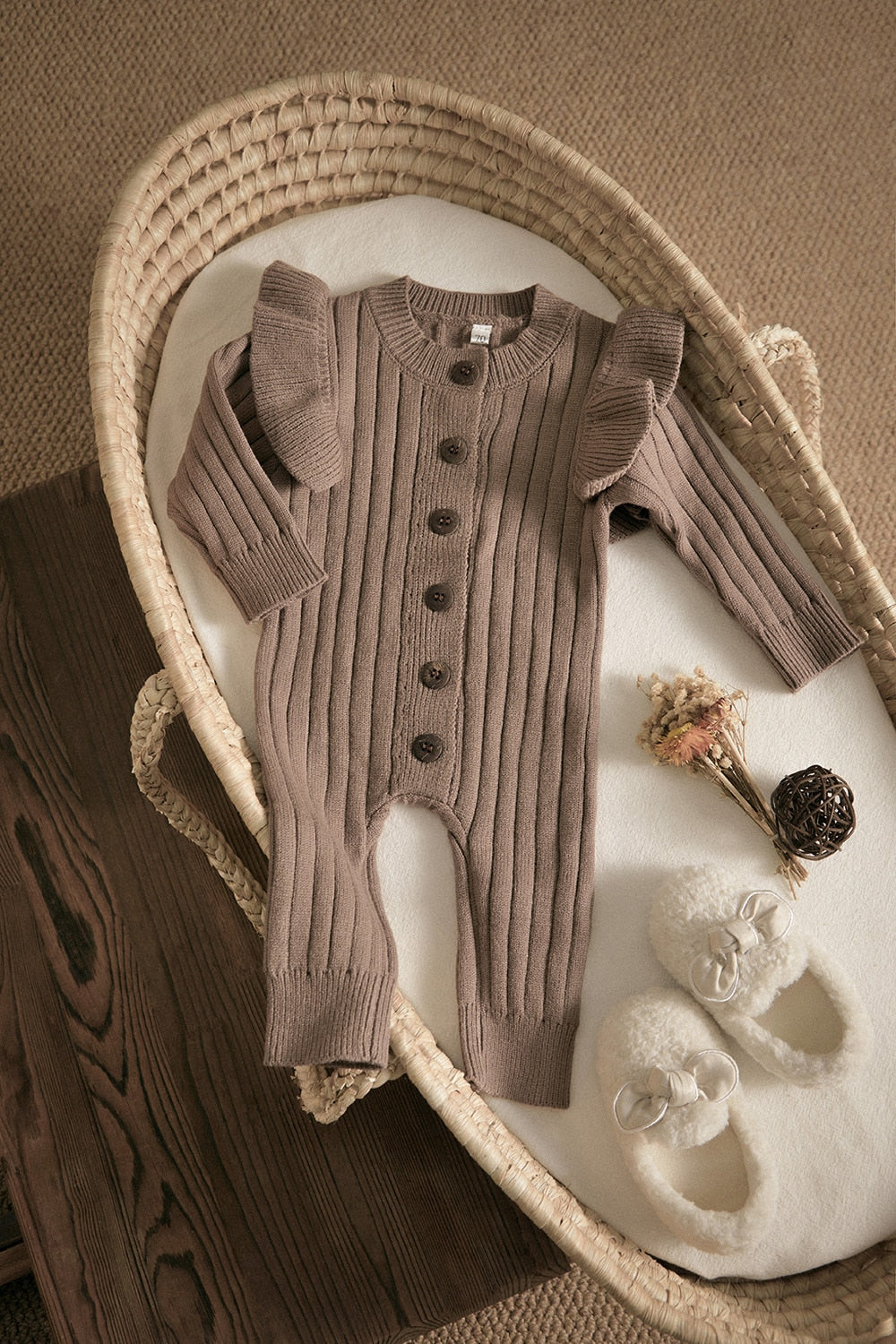 Baby Girls Toddler Fall Winter Chocolate Knit Ruffle Romper Jumpsuit