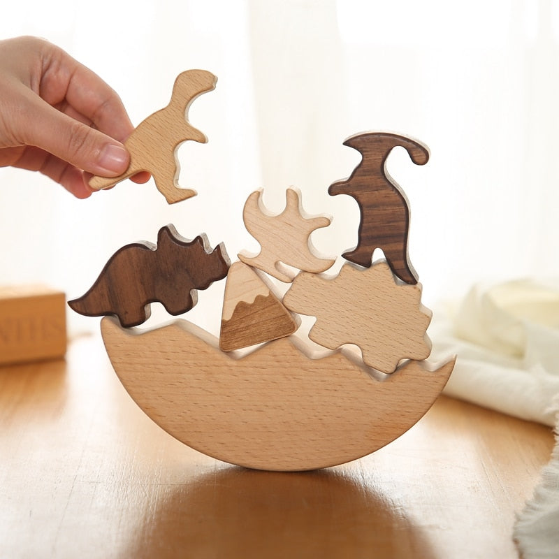 The 9-piece stacking blocks of this series are made of silica gel and high grade natural wood, allowing children to exercise their hands-on ability and the ability to recognize things.