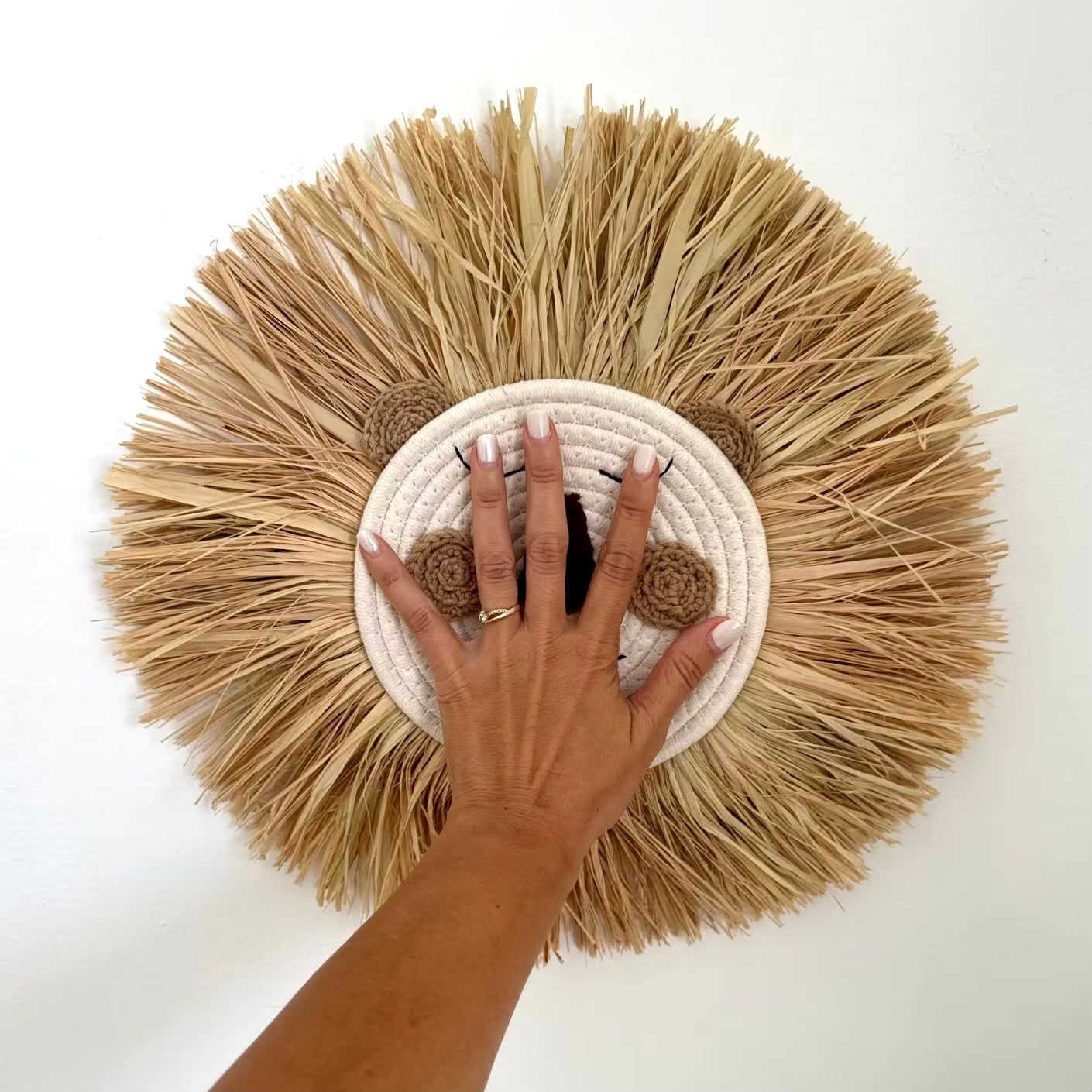 Nordic Handmade Lion with Brown Woven Wall Decor Nursery