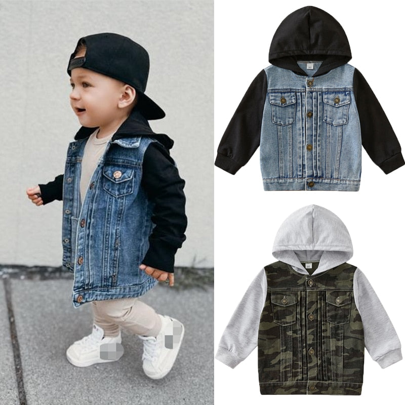 Toddler Boys Denim Hooded Coat Jacket Outerwear