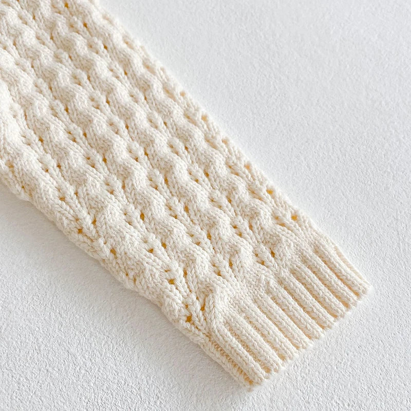 Unisex Baby Toddler Cream Long Sleeve Knitted Romper Jumpsuit