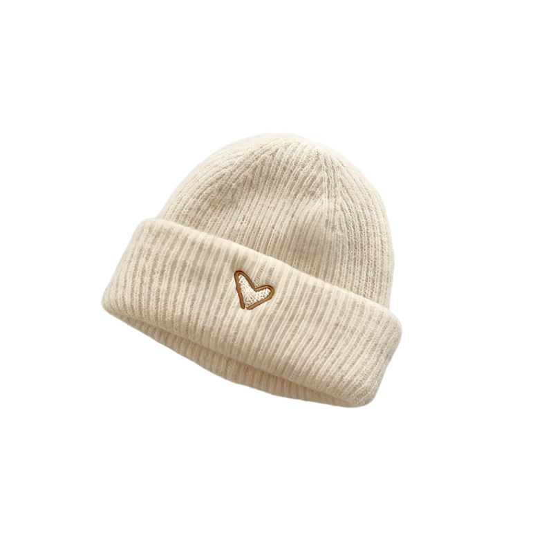Unisex Cream Love Embroidery Toddler Kids Winter Knitted Hat